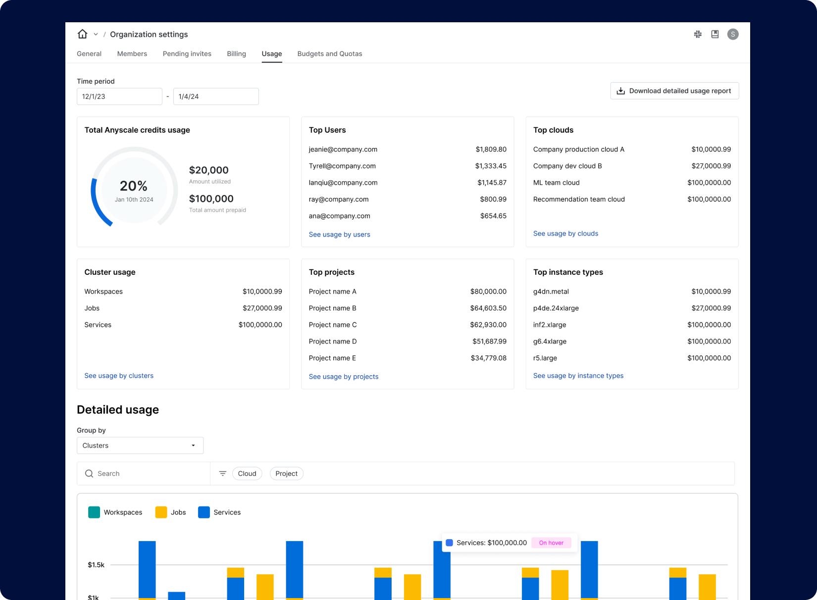 Designing for billing, resource monitoring and governance, API key management and admin settings